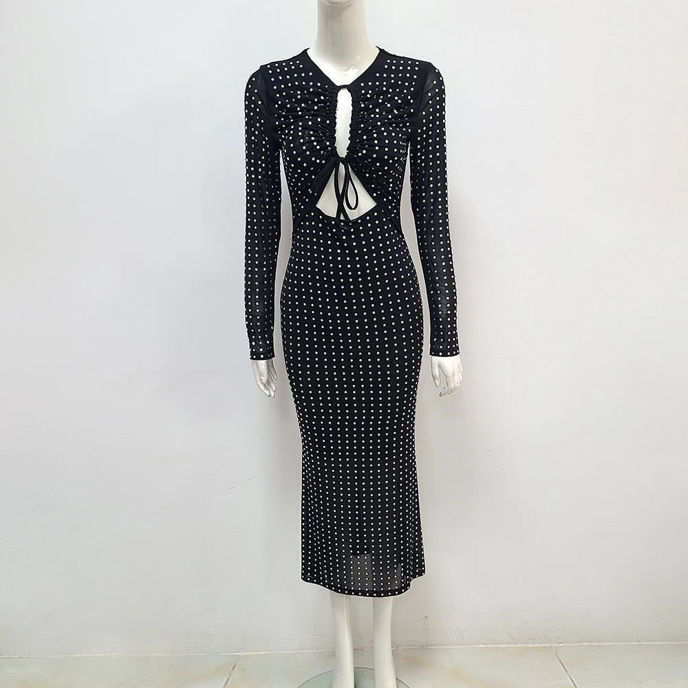"Flying First Class" Beaded Long Sleeve Evening Dress