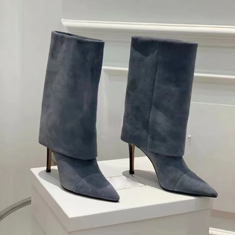 Never Letting Up! Flanged Skirt Suede Boot Heels