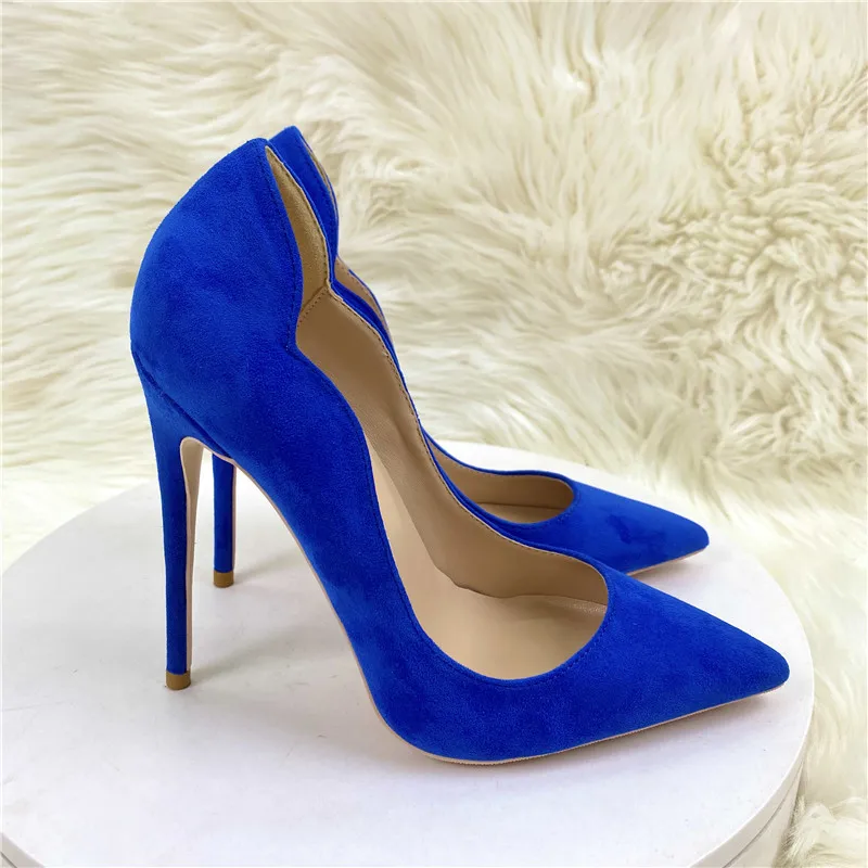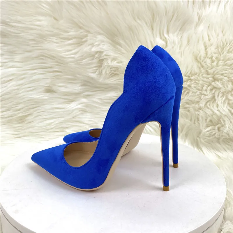 "Burning Blue!" Blue Suede Pointed Toe High Heels 12, 10, & 8 CM