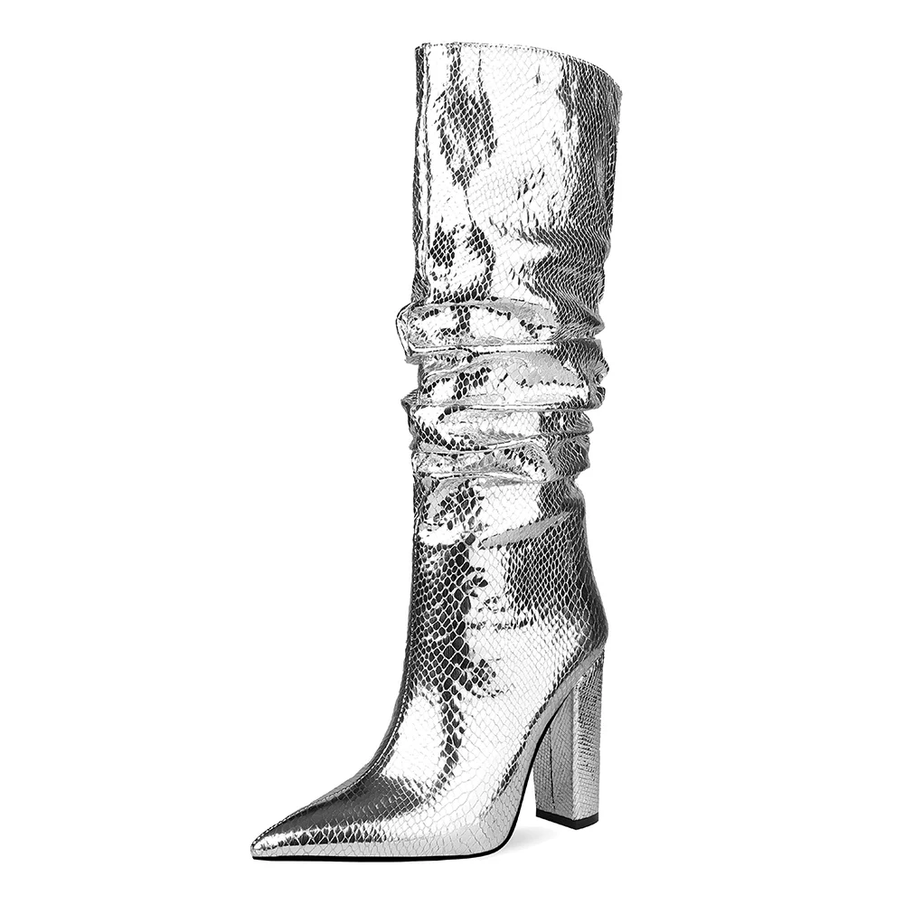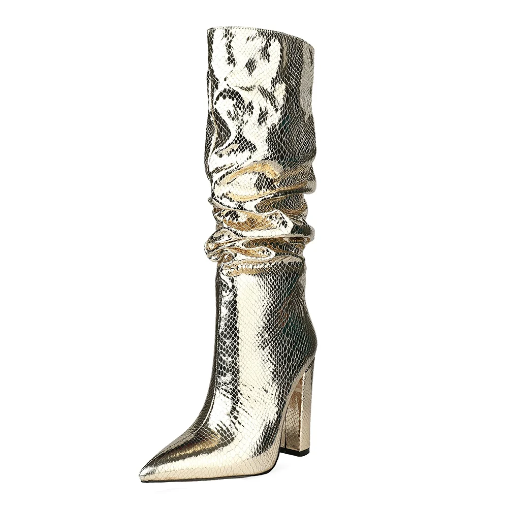 "When She Walks She Gets There!" Faux Snakeskin Leather Knee High Heels Boots